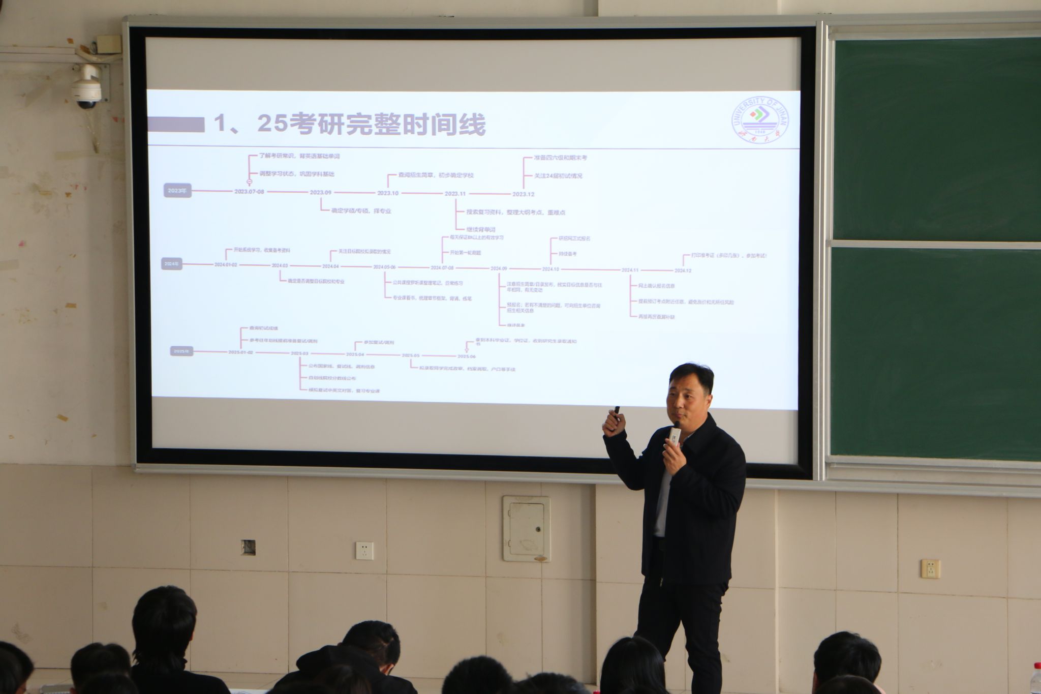 举办“一‘研’为定,定为‘研’一”2025年考研宣讲动员会。学院党委副书记、副院长白雪飞,全体辅导员以及2021级本科生参加,宣讲会特邀蘑菇视频