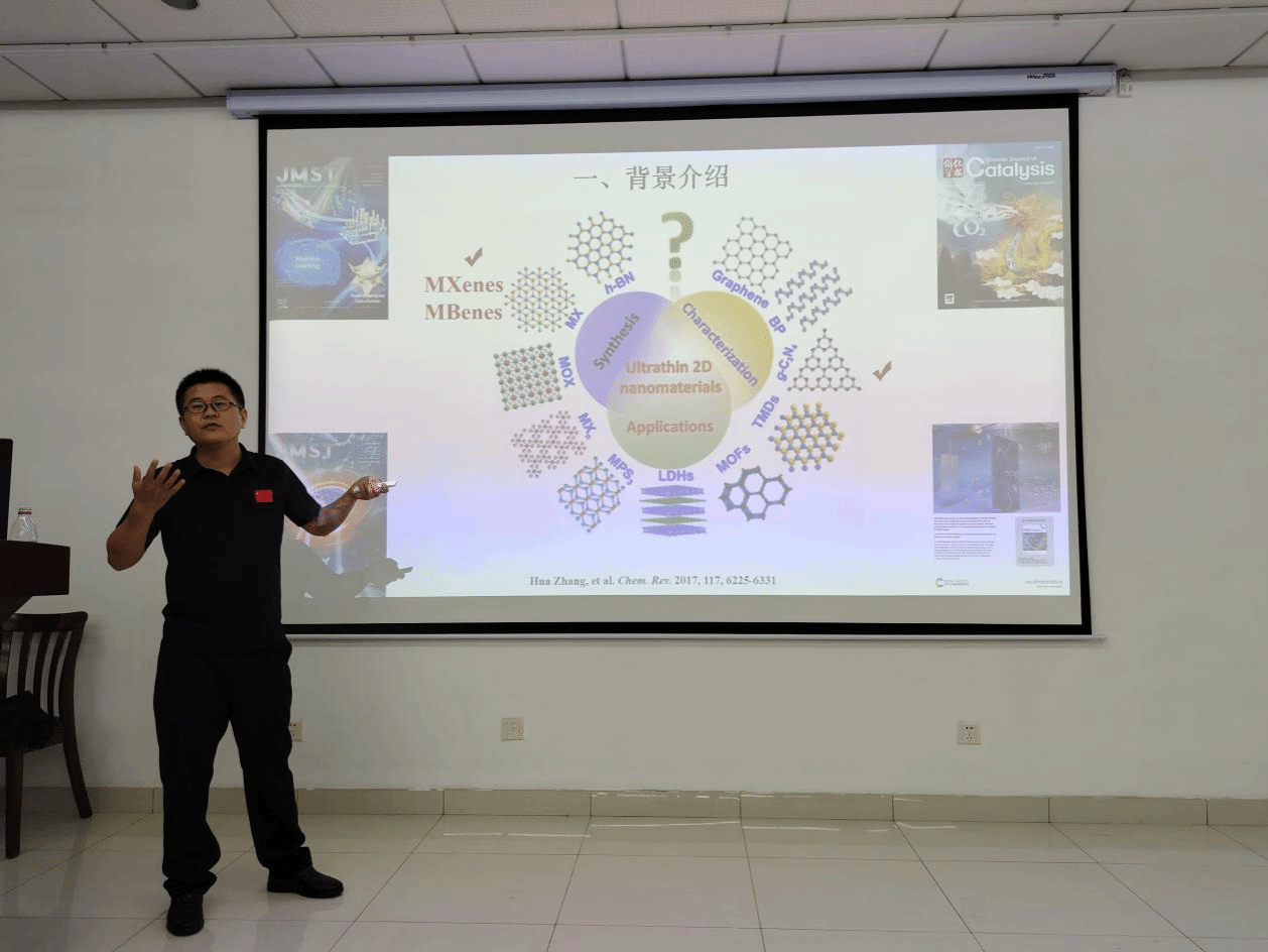 随后,江吉周教授作了题为“二维碳基材料光/电催化”学术报告。他围绕g-C3N4和MXene两类材料,重点介绍了其课题组近年来在二维碳基材料的设计、制备及其在光催化和电催化中的应用与机理研究以及未来发展方向。