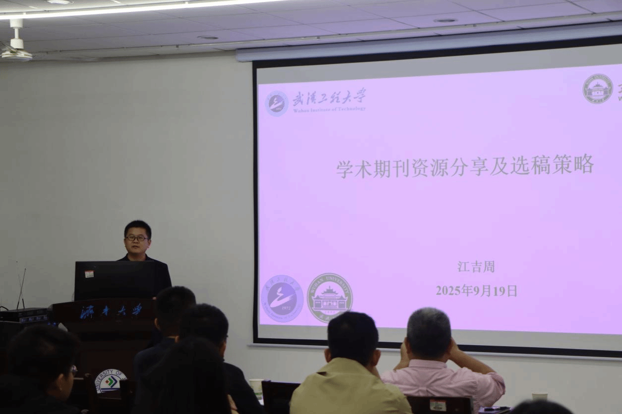 江吉周教授首先从学术期刊资源和选稿策略两方面为学院师生做了题为“学术期刊资源分享及选稿策略”报告。他以编辑视角分享了中国科技卓越领军期刊、重点期刊选稿策略与标准。从标题、图片质量、摘要、研究内容等多维度解析了中国科技卓越领军期刊、重点期刊的投稿和注意事项,为学院青年教师、研究生等青年学者投稿中国科技期刊提供了有价值的参考。他鼓励青年教师、研究生等青年学者积极参与国产期刊建设,将更多优秀科研成果的发表在国产期刊上,全面提升我国科技期刊的学术影响力与国际竞争力。