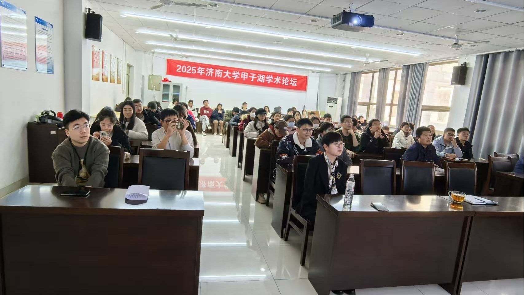 12月6日,河北师范大学于海涛教授、祁彦宇副教授来我校参加2025年济南大学甲子湖学术论坛并开展学术交流。学院相关专业教师、研究生等50余人出席报告会,报告会由学院副院长李村成主持。