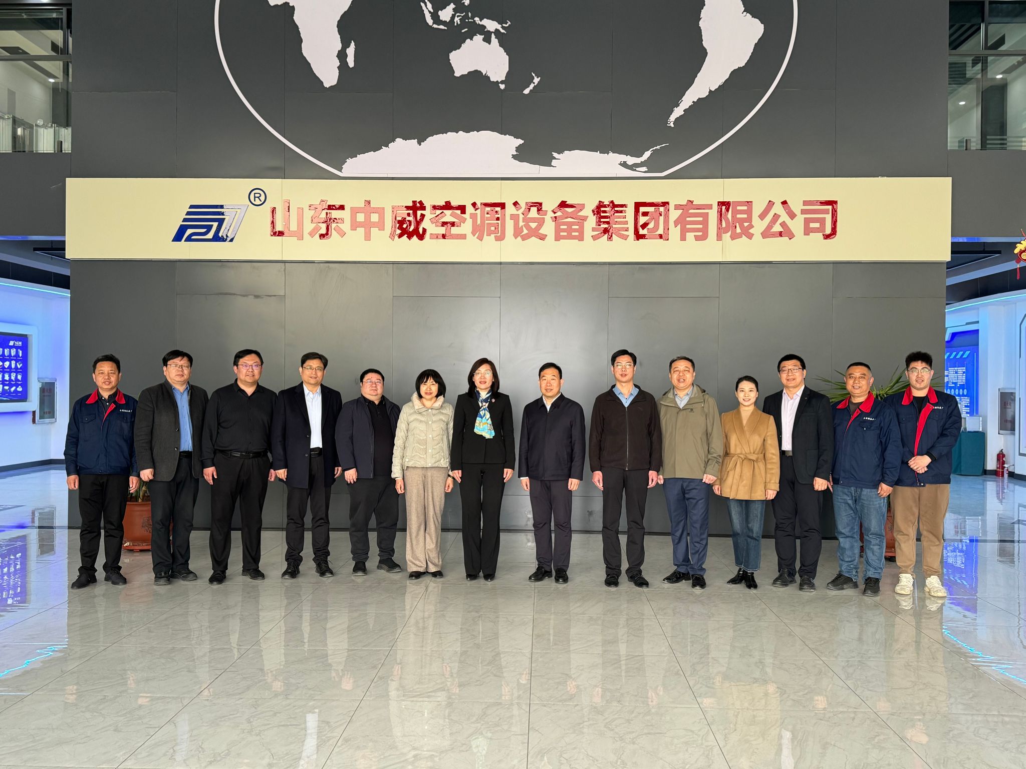 颜梅一行抵达中威空调设备集团有限公司,在武城县委常委、政法委书记魏凯章和中威空调集团有限公司董事长张传义的陪同下实地参观了企业生产车间,详细了解企业生产经营、技术研发、产业布局及人才需求等情况,与企业负责人就生产工艺、技术创新、人才培养等方面进行深入交流,为后续校企精准合作奠定基础。