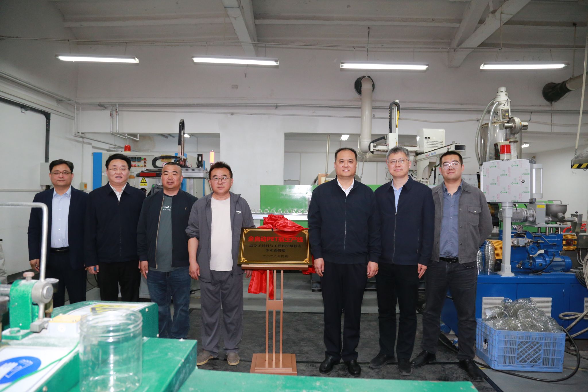 举行校友捐赠教学实践设备启用仪式,标志着我校高分子材料与工程专业1986级校友、青岛森丰塑胶包装制品有限公司董事长李木森捐赠的全自动PET瓶生产线正式落地到位、投入使用。学校党委副书记张庆国出席活动,合作发展处、蘑菇视频