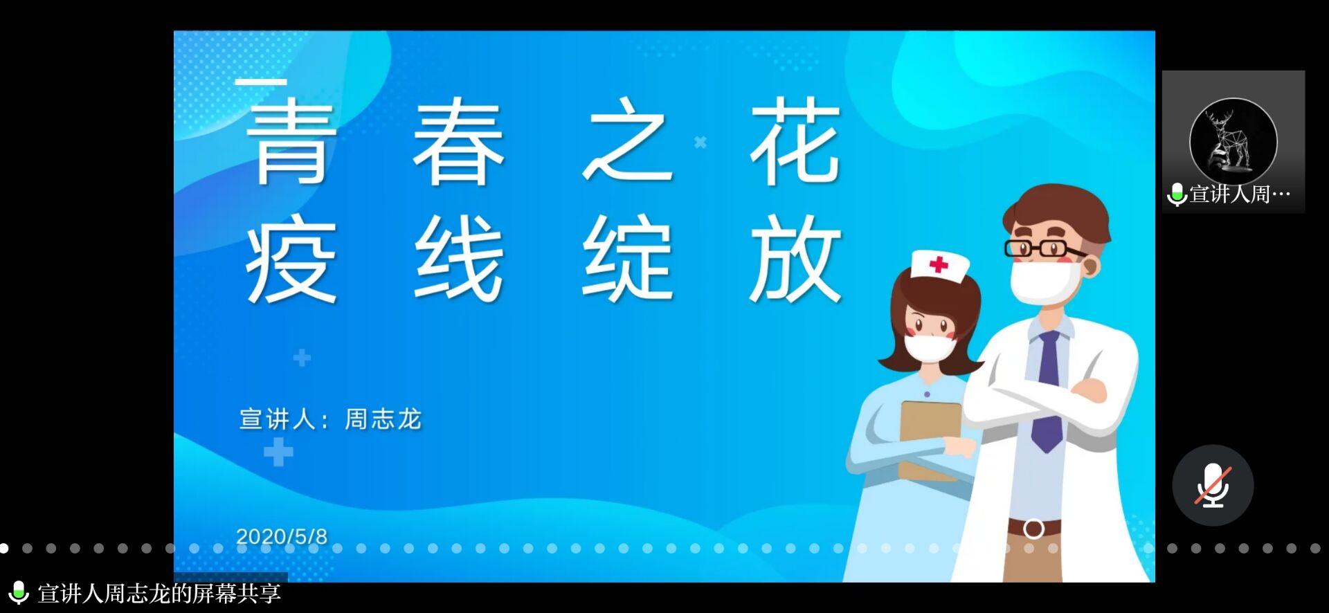 团委于5月8日举办“青春在战疫中绽放”网络宣讲会。参与本次宣讲活动的成员有部分抗疫志愿者以及18级和19级部分团员青年。