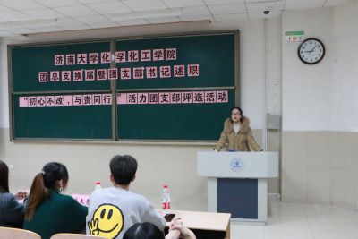 团委委员丁战宇宣读团总支相关任命决定。随后进行2018级和2019级的“活力团支部”评选。各团支部书记向大家展示精心准备的课件,发表了自我团支部风采展示,向大家介绍了其支部的组成及发展运转情况、班风学风建设、参加活动比赛情况以及工作上的不足及未来规划,表示会在校团委、院团委的带领下,认真学习团员规章制度,做好新时代新青年。会议最后,由李健慧老师作总结发言,希望团干部能坚定理想信念,踏实学习,起到良好的带头作用,并转达团委老师对各个团支部工作的肯定。活动在大家的掌声中落下帷幕。