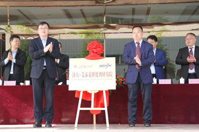 在签约揭牌仪式上,刘宗明副校长与孟祥韬副市长共同为“济大-艾泰克催化剂研究院”揭牌,黄加栋处长与任培全副董事长签署了共建“济大-艾泰克催化剂研究院”协议。