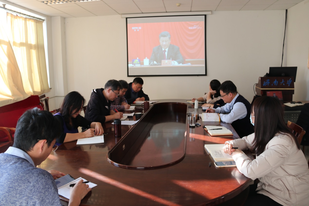 会议由贺铭书记主持,全体党委成员、各教工党支部书记、学生支部代表参加会议。会上集体观看了《中国共产党第十九届委员会第六次全体会议公报》,学习成效明显。