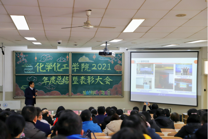 陈国柱副院长代表学院作2021年度工作总结,全面回顾了学院一年来在人才培养、教育教学、学科建设、科研创新、师资队伍、学生管理和服务社会等工作中取得的成果,肯定和鼓励了全院教职工在2021年取得的优异成绩,并对学院2022年的工作提出期望,指明方向。