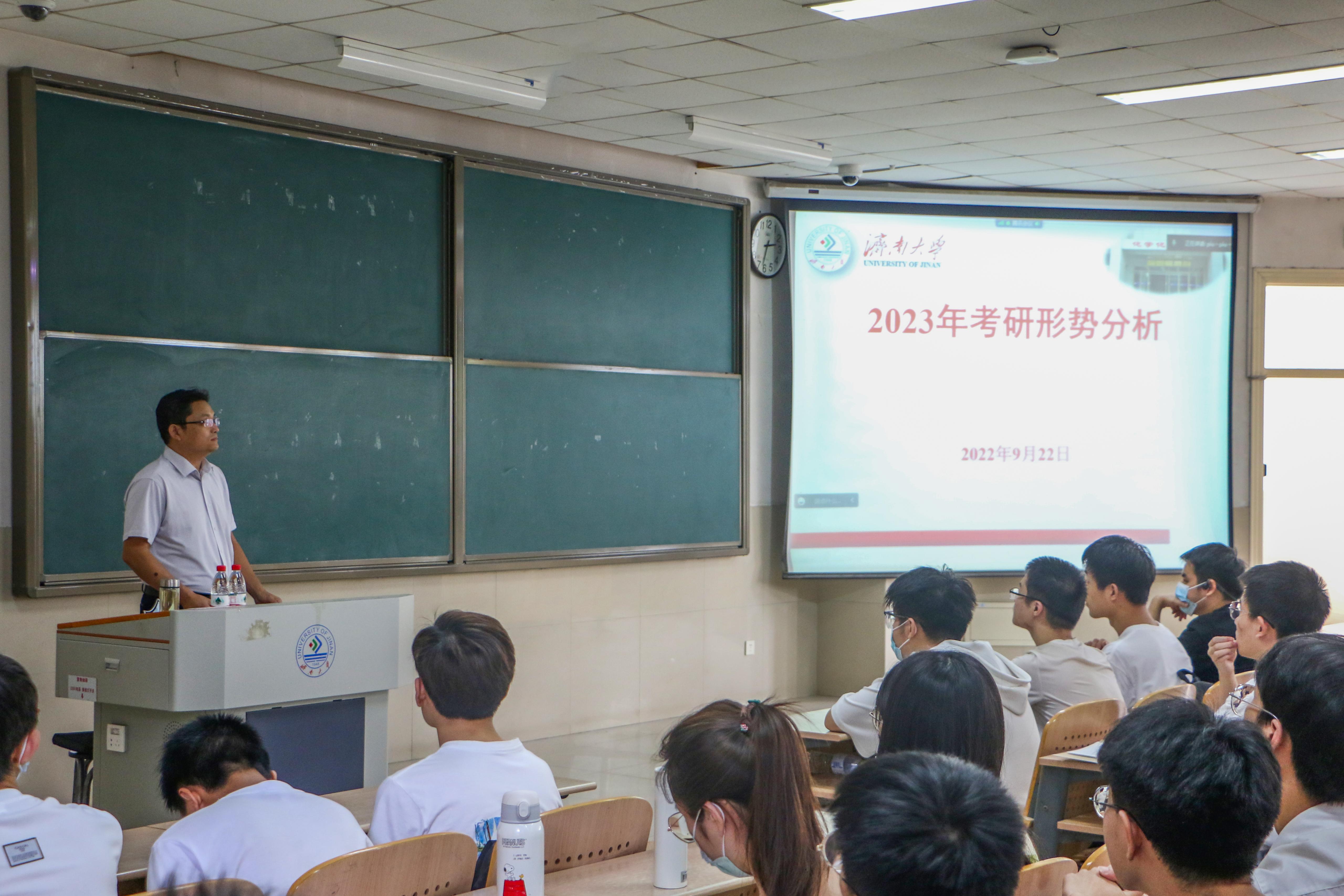副院长陈国柱在第十一教学楼5段101、102教室为2019级学生开展2023年考研政策宣讲活动。2020级、2021级学生和部分家长通过腾讯会议同步收听。