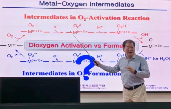 、绿色化学制造与精准检测国际合作联合实验室邀请,韩国梨花女子大学Wonwoo Nam院士于6月6日访问我校,并作了题为“Biomimetic Metal-Oxygen Intermediates in Dioxygen Activation and Formation Chemistry”的学术报告。报告中,Wonwoo Nam院士针对非血红素高价金属氧中间体的捕获、谱学表征和反应动力学研究,以及人工光合作用的反应机制两方面进行了详细的介绍。报告交流环节,与会教师和研究生与Nam教授进行了深入的探讨和交流。