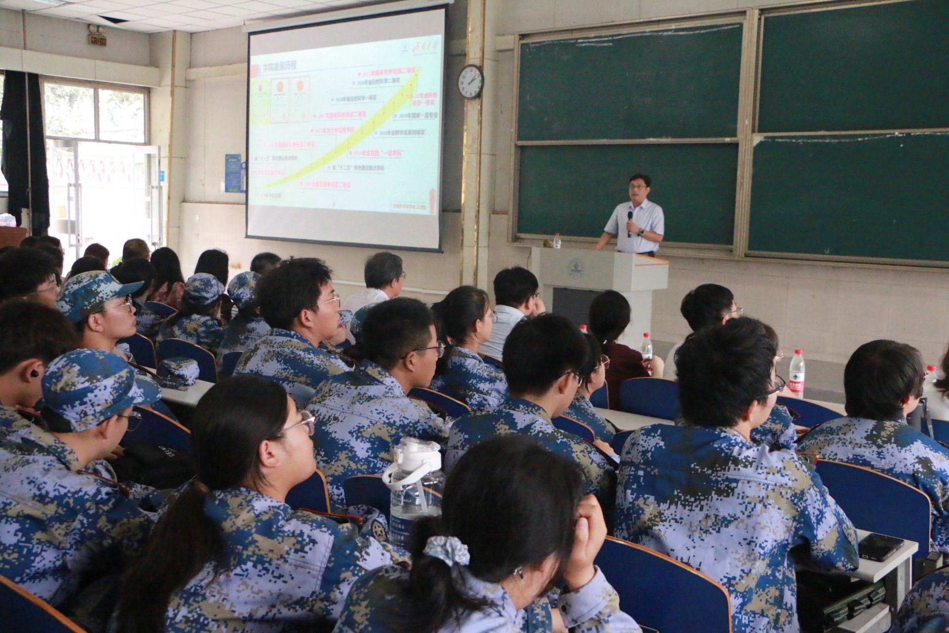 院长陈国柱围绕学院发展历程、科研平台、硬件设施、奖项荣誉、杰出校友等方面介绍了学院的基本情况,并寄语新生:生逢盛世当不负盛世,生逢其时当奋斗其时,新时代大学生要努力做走在时代前列的奋进者、开拓者、奉献者,为实现第二个百年奋斗目标而努力奋斗。