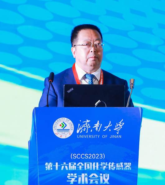 的发展历程以及近年来取得的成绩,并表示作为国内化学传感器领域极具影响力的学术会议,此次会议精英荟萃、专家云集,是一场高规格、高质量、高水平的学术盛会,各位专家在交流中碰撞思想,在沟通中迸发灵感,一定能够取得丰硕的研讨成果,必将推动化学传感器领域研究达到新的高度,希望与会专家学者对济南大学的建设和化学学科的发展建言献策,最后预祝此次会议圆满成功。