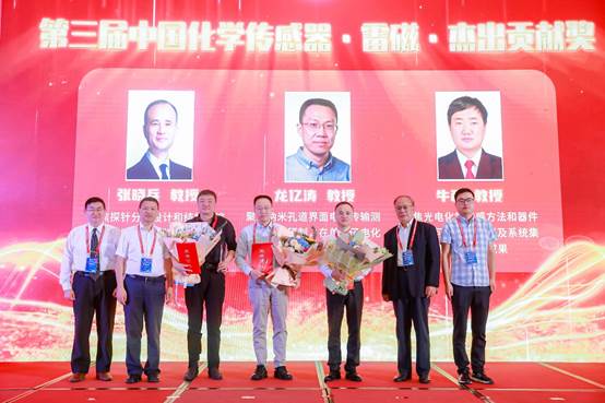 开幕式上同时颁发了2023年度“中国化学传感器雷磁终身成就奖”和“中国化学传感器雷磁杰出贡献奖”。中国科学院江桂斌院士获得终身成就奖,张晓兵教授、龙亿涛教授和牛利教授分别获得杰出贡献奖。