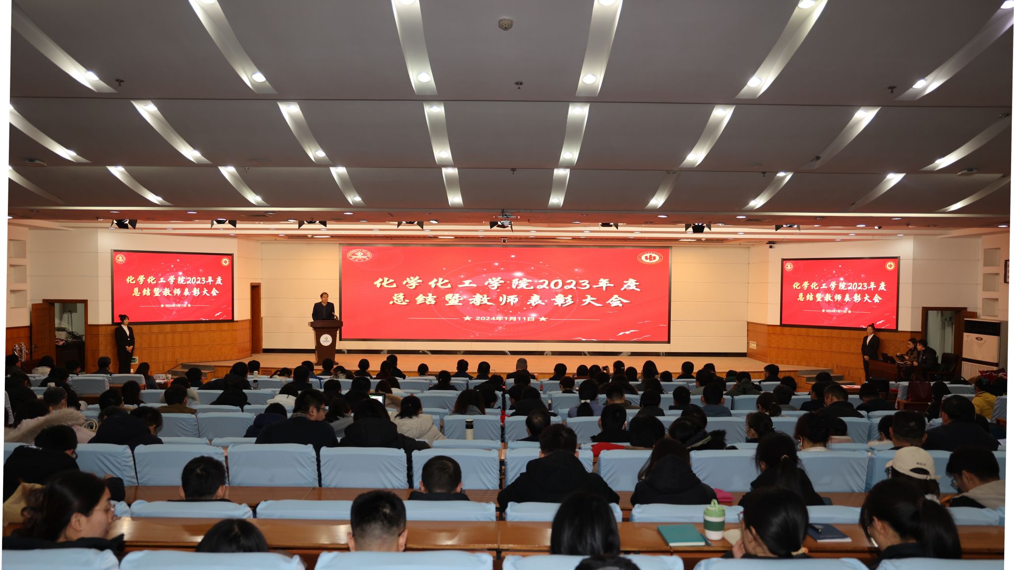 2023年度工作总结暨教师表彰大会在第一学术报告厅举行。济南大学党委常委、副校长黄加栋,党委常委、宣传部部长贾海宁,党委学生工作部(处)、党委教师工作部、人力资源处、教务处、发展规划与学科建设处、科技处、党委研究生工作部、合作发展处、团委等职能部门负责人及学院全体教职工、学生代表参加会议。会议由蘑菇视频