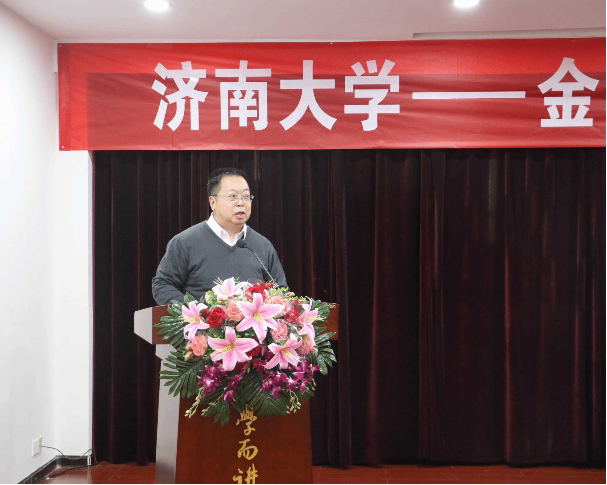 山东金城医药集团总裁李家全对我校一行的到来表示热烈欢迎,简要介绍了企业发展、经营状况、人才理念及校企双方合作情况。他表示,希望通过就业实习基地的建立,为学校人才培养助力,也为金城医药输送更多优质人才,让就业实习基地成为联系济南大学、金城医药的重要桥梁和纽带,成为推动双方创新发展的重要平台,开启校企合作新篇章。