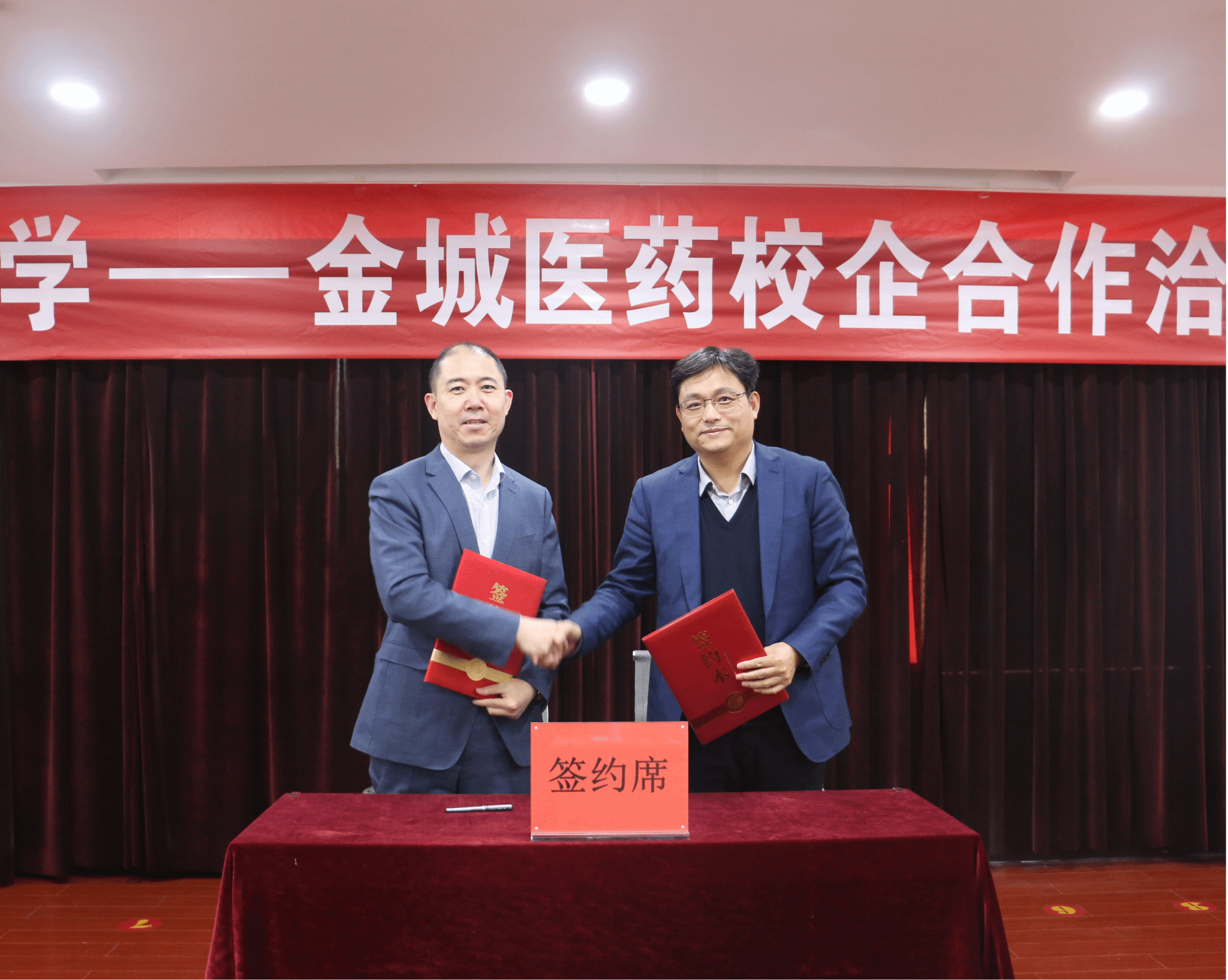 陈国柱院长和金城医药集团崔希礼副总裁共同签署了就业实习基地协议。