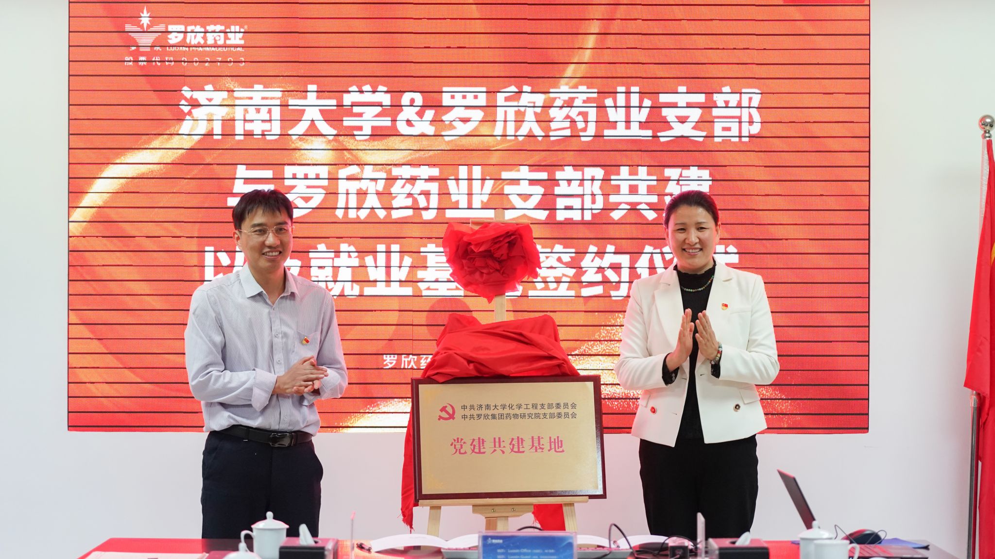 化学工程支部委员会与中共罗欣药业集团药物研究院支部委员会,签署校企党建共建协议并揭牌。学校与罗欣药业集团股份有限公司签署就业实习基地协议并揭牌。