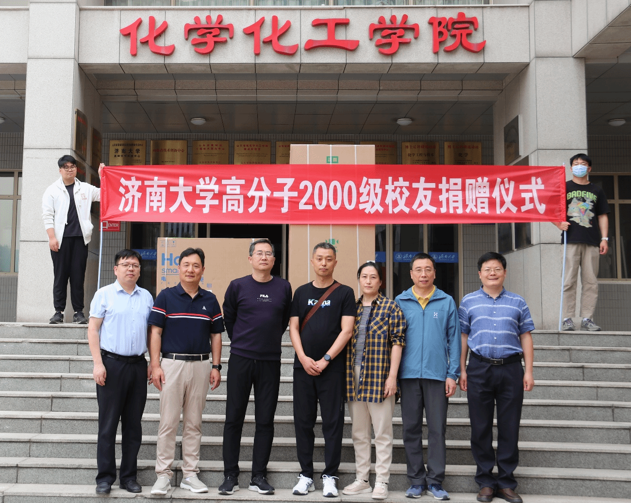 举行了高分子2000级校友捐赠仪式。高分子2000级校友代表曹相山、赵小云和学院党委书记贺铭、副院长李辉、马廷滨老师、高分子专业负责人李春生、系主任刘继涛等参加了捐赠仪式。