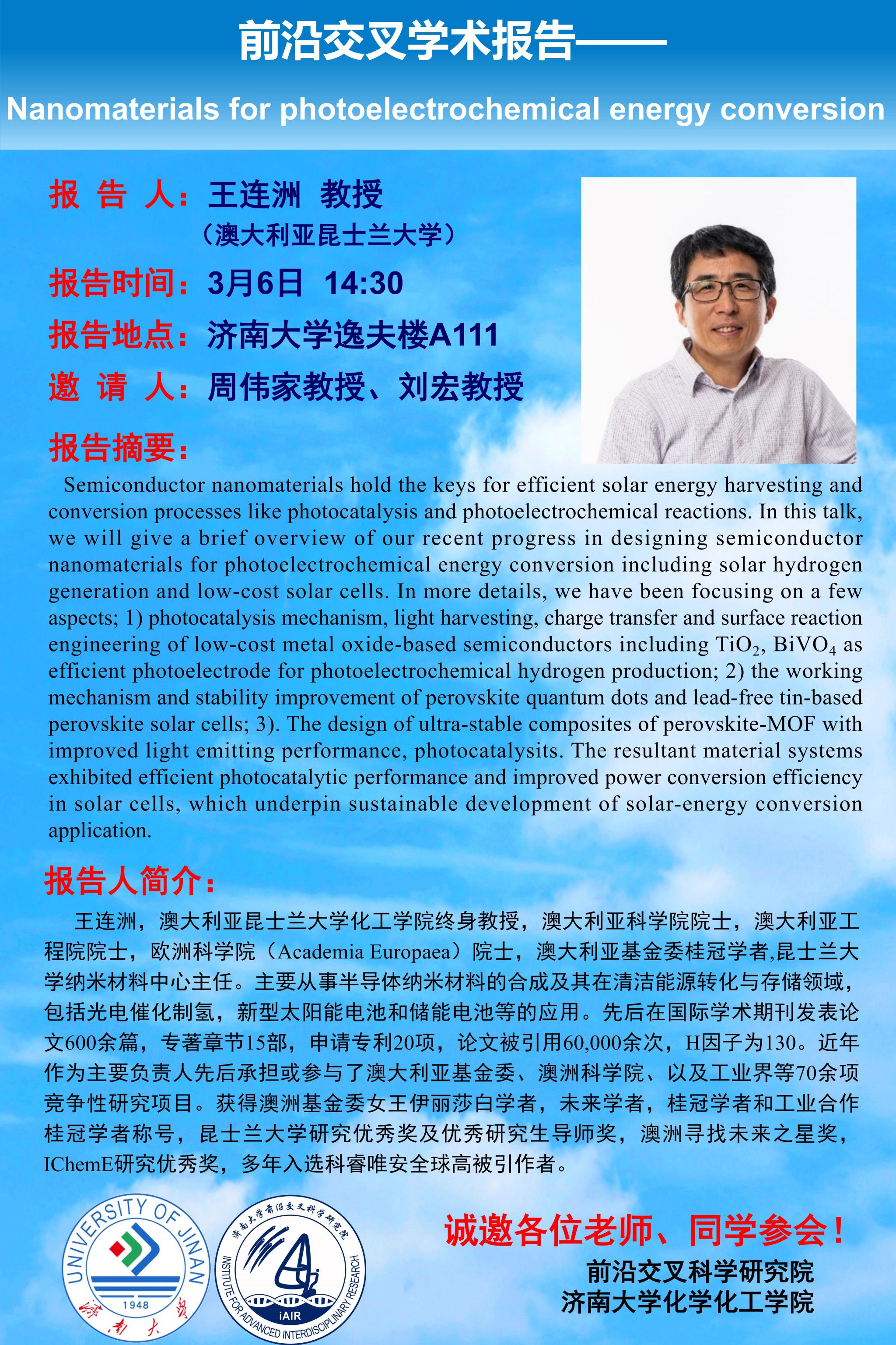 前沿交叉学术报告丨Nanomaterials for photoelectrochemical energy conversion