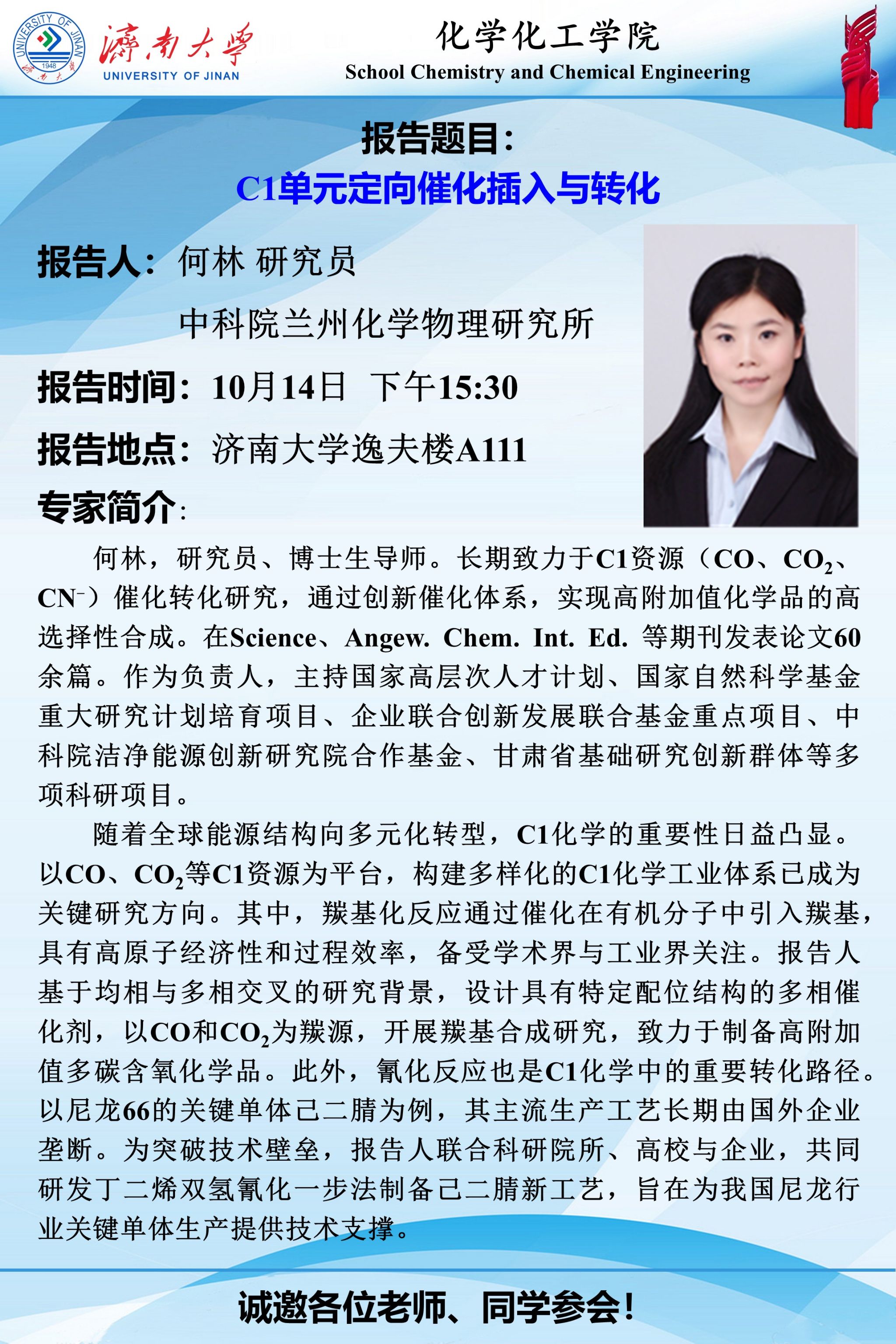 学术报告 | C1单元定向催化插入与转化
