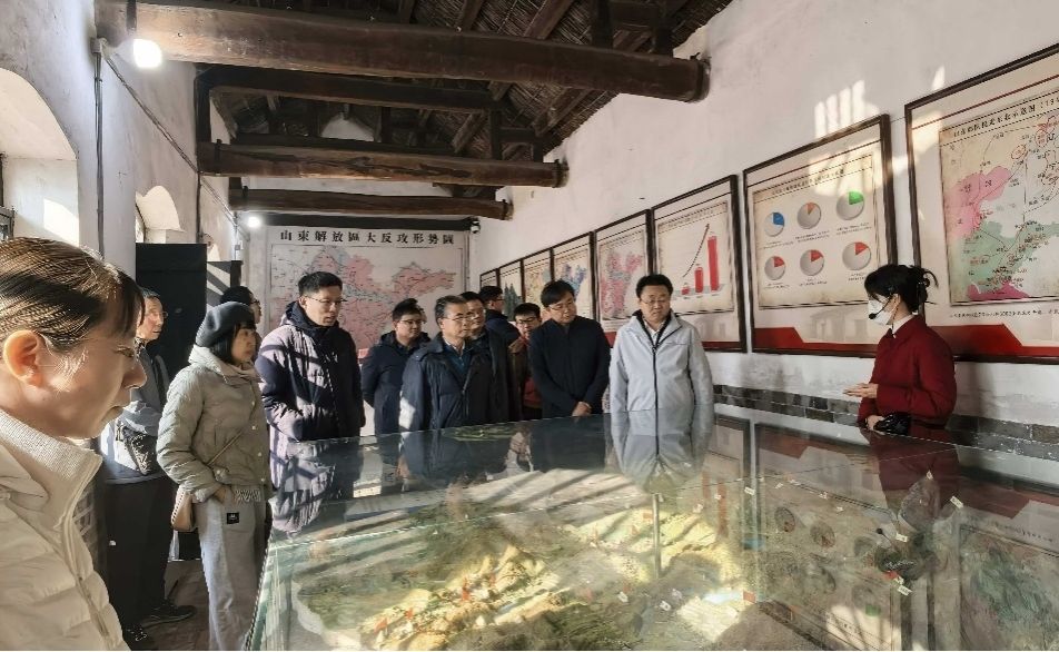 队伍首站抵达山东省政府与八路军115师司令部旧址。行走在明清古韵的院落中,支部党员跟随讲解,依次探访了省公安总局、财政厅、民政厅等历史展陈,以及罗荣桓、陈光、朱瑞、黎玉、肖华等老一辈革命家曾工作生活的简朴居所。透过斑驳的实物、珍贵的影像与逼真的复原场景,那段战火纷飞的峥嵘岁月仿佛重现在眼前,生动诠释了山东抗日民主政权从创建、巩固到发展壮大的艰苦历程。